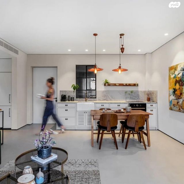 בצפון יפו, בשכונת נגה המבוקשת, דירת 2.5 חדרים בשטח 59 מ"ר, בקומה הראשונה. הדירה מתאפיינת בתכנון פונקציונלי, עם שני כיווני אוויר, וחצי חדר המשמש כחדר עבודה או חדר לילד, עם דלתות הזזה המאפשרות הפיכתו לחלק מהסלון. המתחם נמצא בקרבה לים ולתחנת רכבת הקלה הקו האדום, ומציע סביבה קהילתית ואינטימית.
